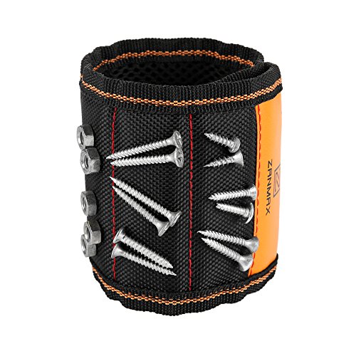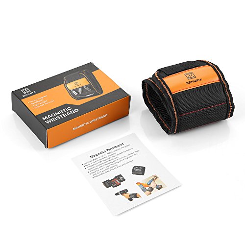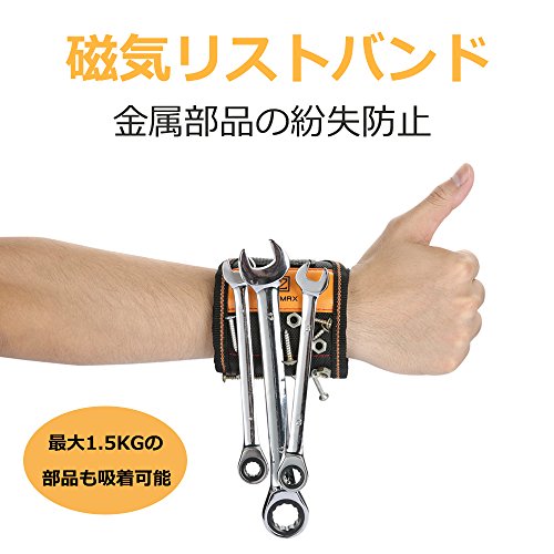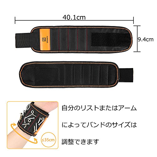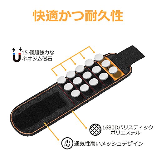 Z ZANMAX 磁気バンド 15個ネオジム磁石内蔵 ネジ・釘・ビットを磁石で吸着 金属部品の紛失防止 磁気リストバンド 作業効率アップ アームマグネットバンド 左右兼用 便利グッズ フリーサイズ 工具 ブラック