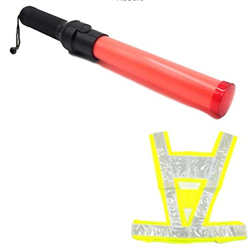 ZERONOWA LED 誘導棒 誘導灯 警備 交通整理 夜間 工事 41cm 反射ベスト付き (赤1本)