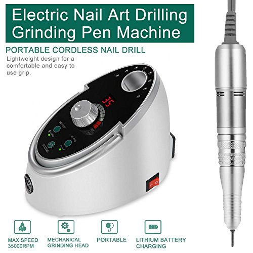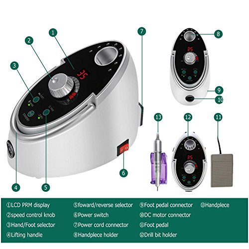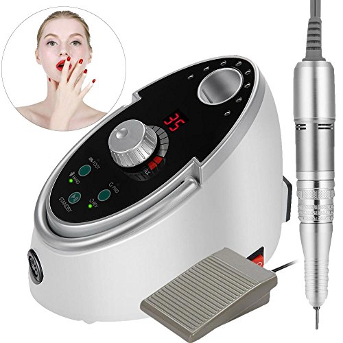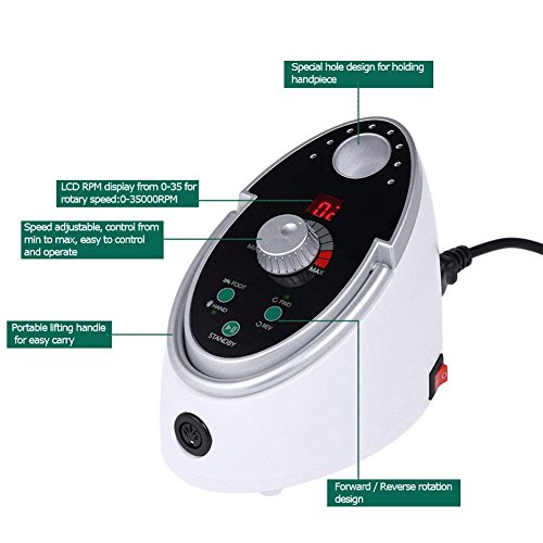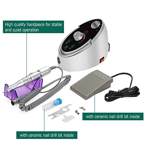 - 高品質の電気ネイルドリルマシン:セラミックネイルドリルビット付き、安定した、静かな、タッチボタン、スピードディスプレイ、LCD RPMディスプレイ回転スピード0-35000RPM完璧
