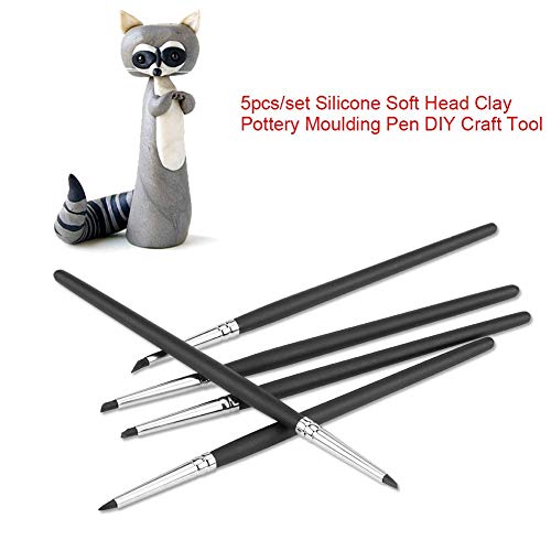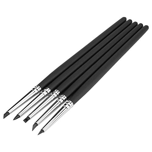 5本クレイモールディングペン、ネイルアートペン、シリコンソフト、ヘッドクレー陶器 モールディングペン DIYクラフトツール 彫刻陶器 ネイルアート (ブラックヘッド)