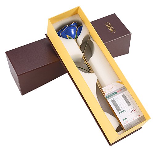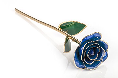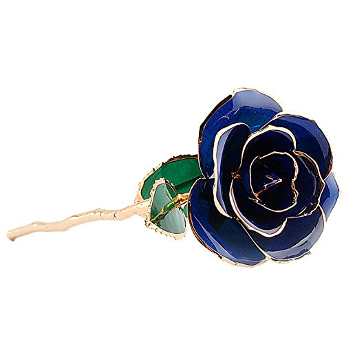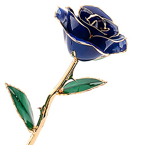 PANICTECH Long Stem Dipped 24 Kゴールドトリムローズ、最高のギフトバレンタインデー、母の日、クリスマス、誕生日、ウェディングギフト 11 inch ブルー zjchao-009