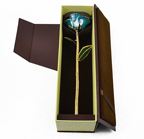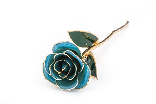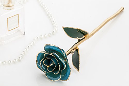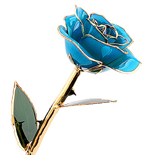 ZJchaoゴールドローズLove Forever Long Stem Dipped 24 Kローズ箔トリム、彼女のためのギフト 11 inches ブルー zjchao-001