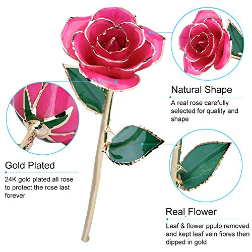 24カラットゴールドDippedピンクRealローズフラワー女性のためのギフト、最高のギフトバレンタインデー、母の日、記念日、誕生日やクリスマス