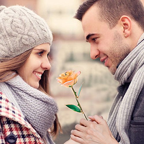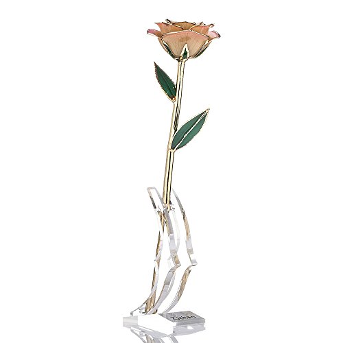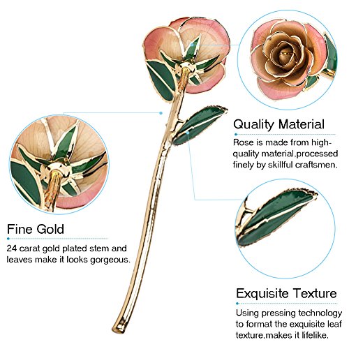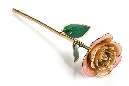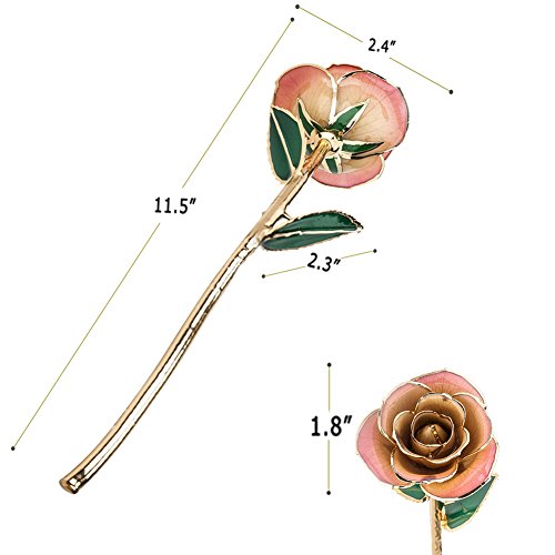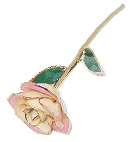 ZJchaoゴールドローズLove Forever Long Stem Dipped 24 Kローズ箔トリム、彼女のためのギフト 11 inches ホワイト zjchao-053