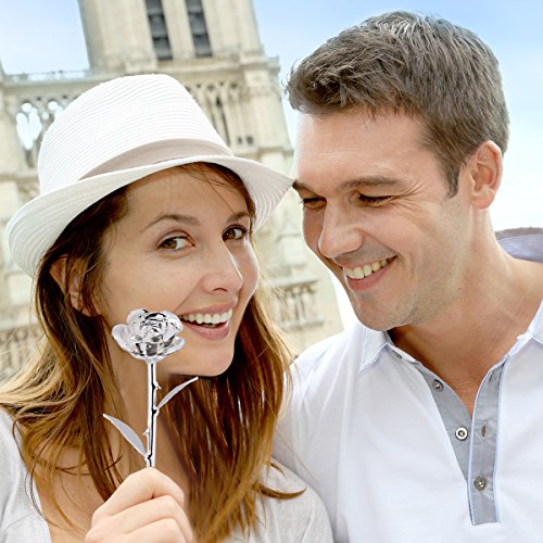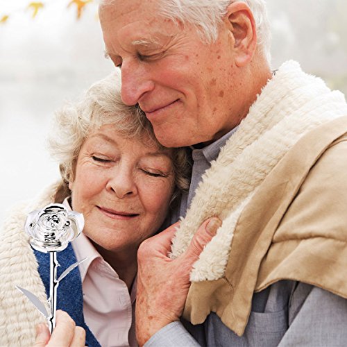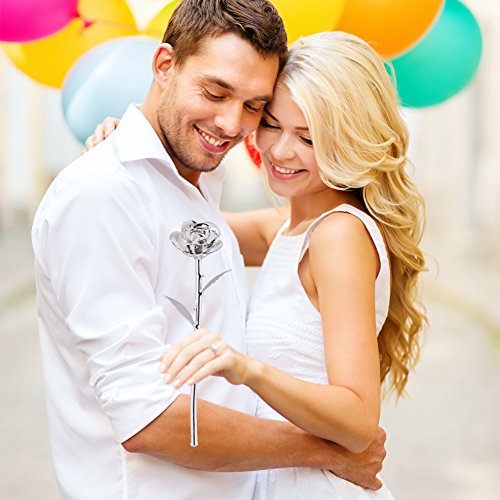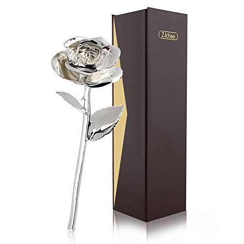 Zjchao ロングステム24Kゴールドディップトリム赤ローズ ギフトボックス入り カップル向けバレンタインギフト かわいいバレンタインデーギフトアイデア ロマンチックな記念ギフト シルバー WXD-US-077