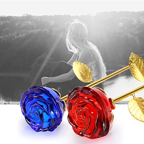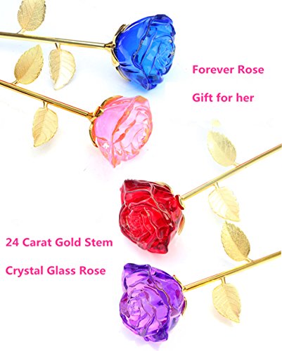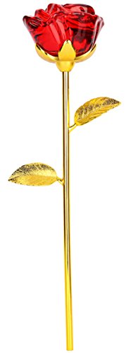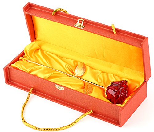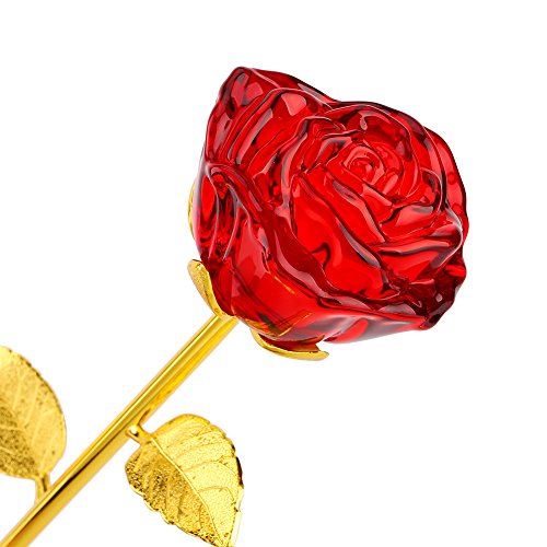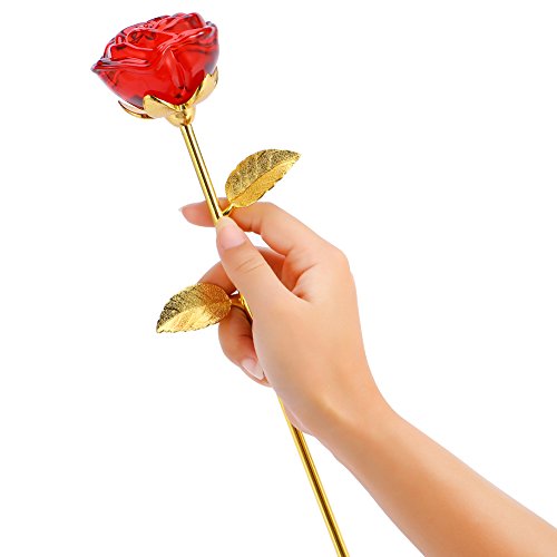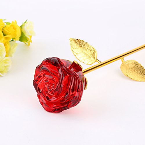 ガラスローズ花、24 KゴールドメッキLong Stem人工ローズフラワー記念日誕生日バレンタインギフトfor Her 11 レッド WXD-GR-002