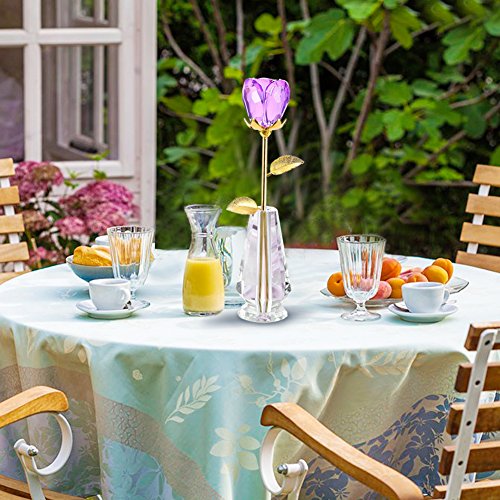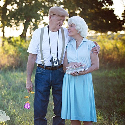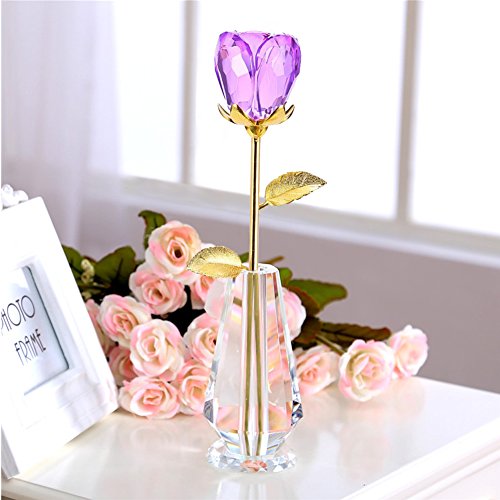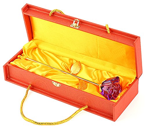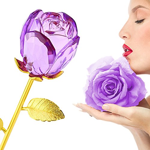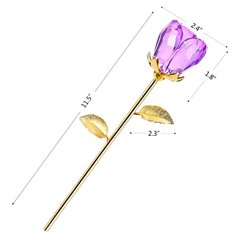 ガラスローズ花、24 KゴールドメッキLong Stem人工ローズフラワー記念日誕生日バレンタインギフトfor Her 11" パープル WXD-GR-008