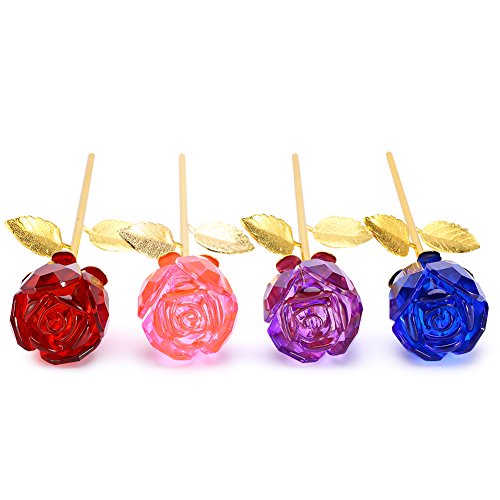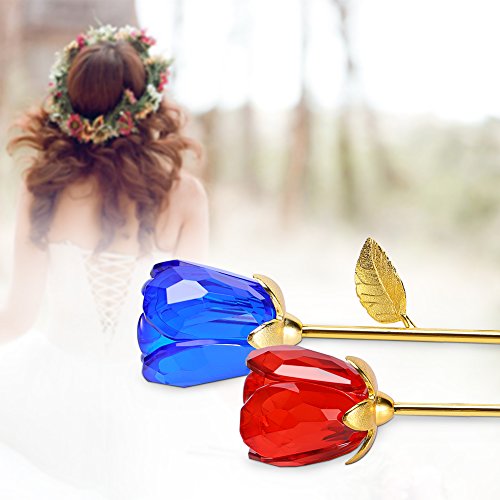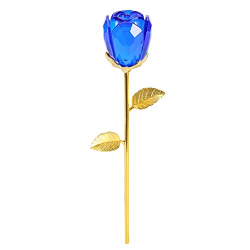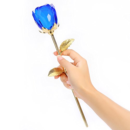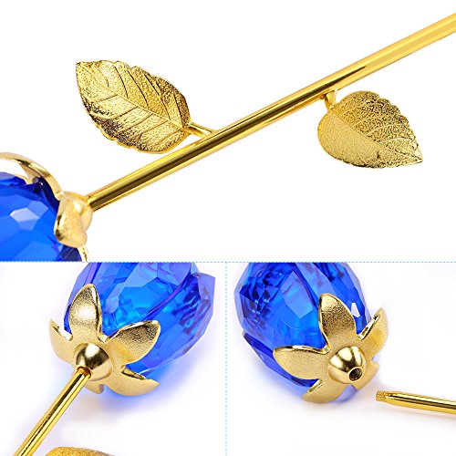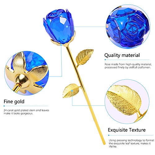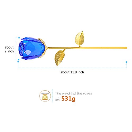 ガラスローズ花、24 KゴールドメッキLong Stem人工ローズフラワー記念日誕生日バレンタインギフトfor Her 11 ブルー WXD-GR-005