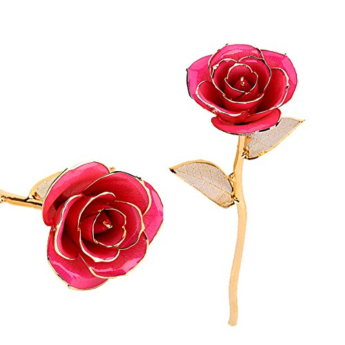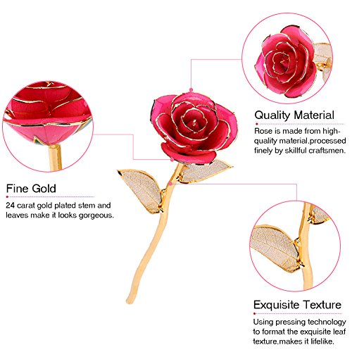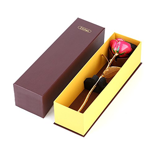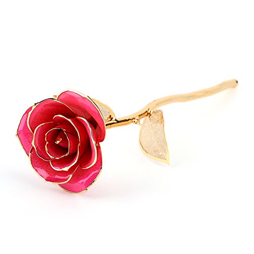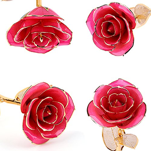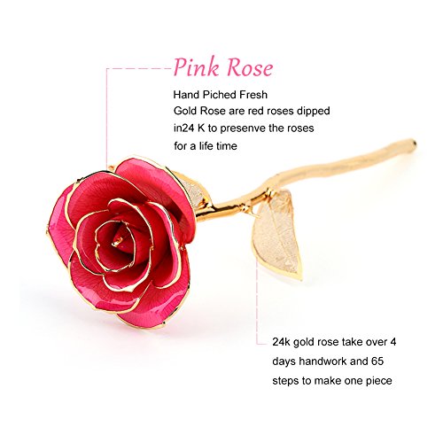 彼女のためのギフト、ZJchaoゴールデンローズDipped in 24 KゴールドForever Roses Flower with Golden Leavesピンク ピンク YJX005-P-1
