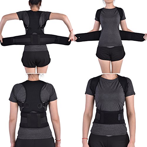 男性女性 弾性肩のブレースウエストベルト バックサポート姿勢のコレクター 調整可能(XXL-黑色)
