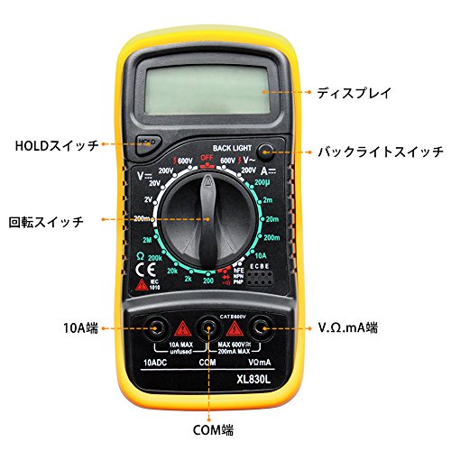 - 【日本語説明書付き】データホールド、および読みやすい大型バックライト付きLEDディスプレイ搭載。暗所でも画面表示を確認できます。一年間品質保証、日本語説明書付属しています。