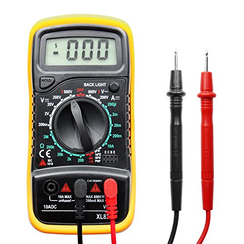 この製品は高精度の持ちやすいデジタルマルチメーターです。15mmのバックライトLCD付き、データを読みやすいです。電気技師、愛好家、また一般家庭でのご使用に適します。DC/AC電圧、DC電流、抵抗の測定などの他に、導通テストやダイオードテスト、HFEテスト、デュアルバルブテスト、NPN PNPトランジスタテストの機能も備えています。回路や配線の診断および組み立て、また修理にも使える。 その他に、読みやすいバックライトLCD、スタンド、全レンジ過負荷保護、低電力提示、データホールド、オーバーレンジ警告、ブザー機能付いています。 表示:2000カウント オートレンジ:√ データホールド:√ バックライト:√ ダイオードテスト:√ 継続性:√ 最大値ホールド:√ 負荷保護過:√ 給電:9V 6F22バッテリー(含む) 安全ランキング:CE ETA CAT.II600V RoHS ご注意:本製品は直接にコンセント の周波数を測定出来ません。 【仕様】 DC電圧:200mV/2V/20V/200V±(0.5%+2) 600V±(0.8%+2) AC電圧:2V/20V/200V/600V±(1.0%+3) DC電流:200μA/2mA/20mA/200mA±(1.0%+3) 10A±(3.0%+3) AC電流:200μA/2mA/20mA/200mA±(1.2%+3) 10A±(3.0%+5) 抵抗:200Ω/2kΩ/20kΩ/200kΩ/2MΩ±(0.8%+2) 20MΩ±(1.0%+2)