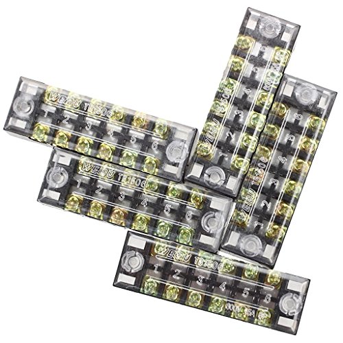 Zafina 端子台 バリア端子板 600V 15A 2行ミナルブロックストリップ カバー付き (5個セット)