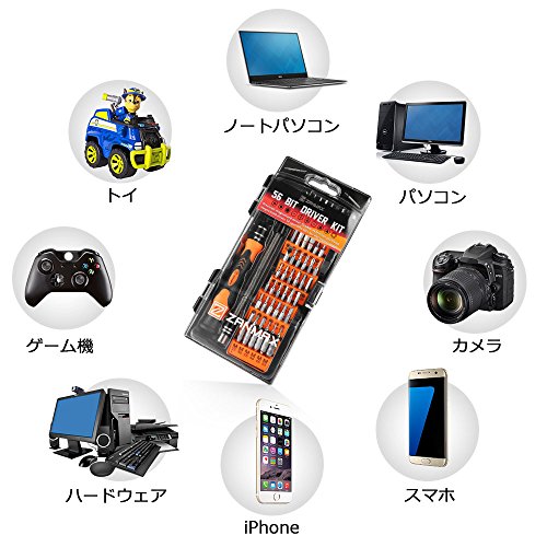 - ドライバーセット:60in1の精密ドライバーセットです。56種のビットが搭載していて、PC/iPhone X/iPhone 8/Smart Phone/Tablet/X-box/Clock DIYなど多くの機械に対応します。