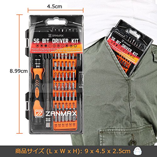 Zanmax ドライバー 60in1 ドライバーセット 修理キット 56種ビット トルクス 星型 Y型 三角 プラス マイナス 多機能ツール PC iPhone X iPhone 8 Smart Phone メガネ カメラ 時計 PS4 ipad Tablet X-box Clock DIYなどに対応 メンテナンスツール オレンジ