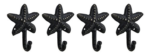 鋳鉄装飾壁フックのセット4 Distressed Blackenedブロンズ仕上げCast Ironヒトデ壁フック3.25 X 4.5 X 1.75インチブラックモデル# 30095