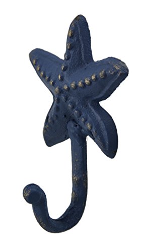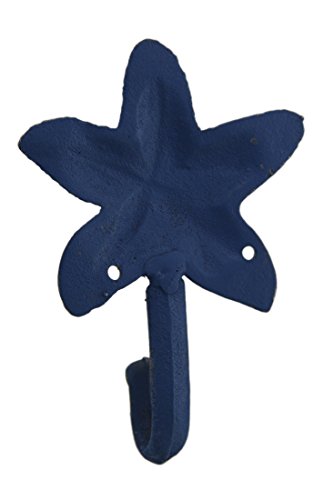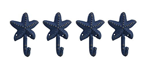 鋳鉄装飾壁フックのセット4アンティーク調ブルー仕上げCast Ironヒトデ壁フック3.25 X 4.5 X 1.75インチブルーモデル# 30093
