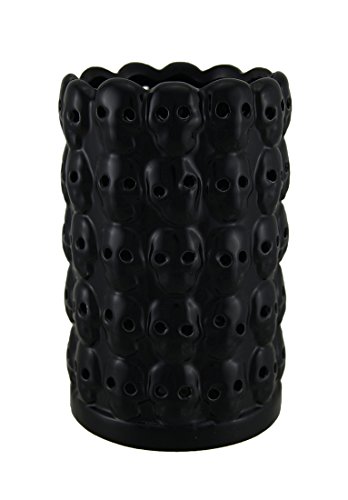 セラミックアクセントランプ電池式LEDセラミックスカルランタンの色変更モデル# 7.25 x 4 x 4 x Inch ブラック J7090