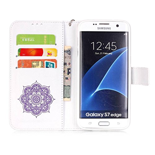 Zeebox Galaxy S7 Edge ケース 二つ折り 手帳型ケース カード収納ホルダー&ストラップ付き 横開き Samsung Galaxy S7 Edge 用 カバー 生涯補償付き (紫色)
