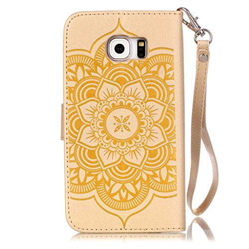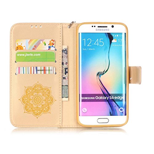 Zeebox Galaxy S6 Edge ケース 二つ折り 手帳型ケース カード収納ホルダー&ストラップ付き 横開き Samsung Galaxy S6 Edge 用 カバー 生涯補償付き (イエロー)