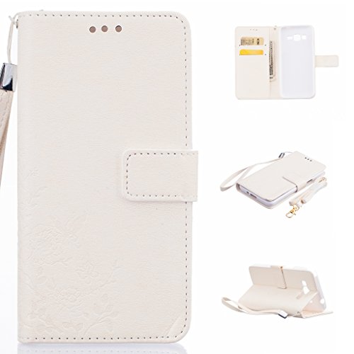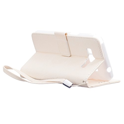 Zeebox Galaxy Grand Prime 手帳型 ケース カード収納 スタンド ストラップ付き Samsung Galaxy Grand Prime 対応 高品質 保護カバー 生涯補償付き (ホワイト)