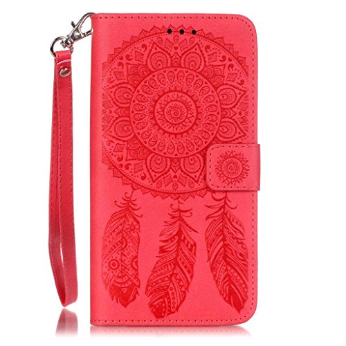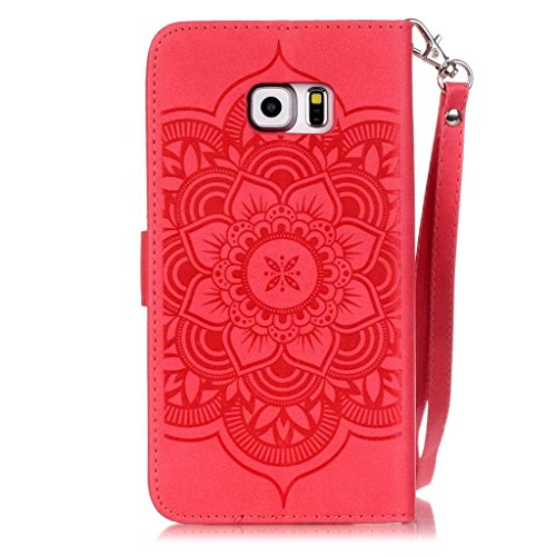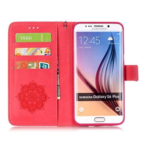 Zeebox Galaxy S6 Edge Plus ケース 二つ折り 手帳型ケース カード収納ホルダー&ストラップ付き 横開き Samsung Galaxy S6 Edge Plus 用 カバー 生涯補償付き (レッド)