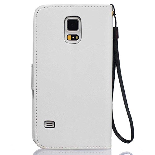 Galaxy S5 手帳型 ケース カバー Zeebox [生涯補償付き] 高品質 落下防止 保護カバー カード収納 スタンド機能 マグネット式 ストラップ付き Samsung Galaxy S5 対応 Case (ホワイト #6)