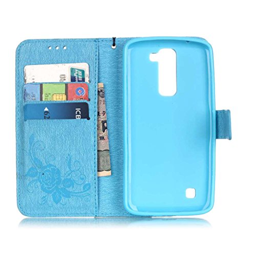 Zeebox LG K7 / Tribute 5 ケース PUレザー 手帳型ケース カード収納 ホルダー LG K7 / Tribute 5 用 カバー 無期限生涯補償付き (ブルー)