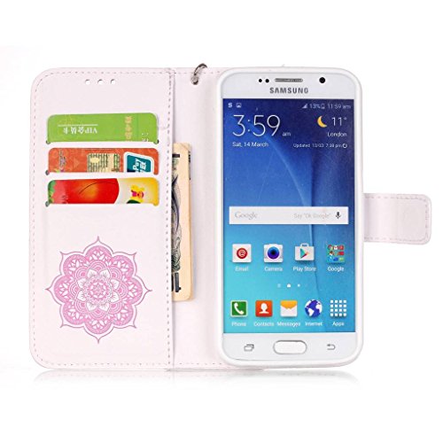 Zeebox Galaxy S6 ケース 二つ折り 手帳型ケース カード収納ホルダー&ストラップ付き 横開き ダイヤモンド Samsung Galaxy S6 用 カバー 生涯補償付き (P2 ピンク)