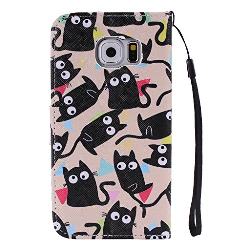 Zeebox Samsung Galaxy S6 手帳型 ケース カバー [生涯補償付き] 高品質 保護カバー カード収納 スタンド機能 マグネット式 ストラップ付き Samsung Galaxy S6 対応 (ブラック)