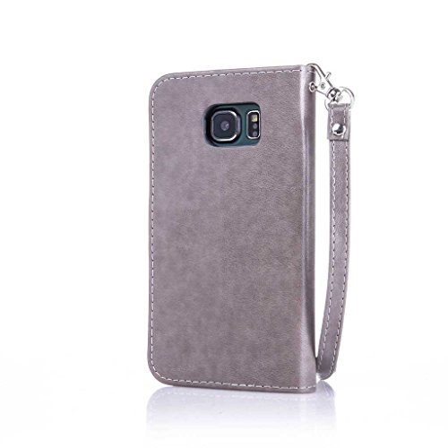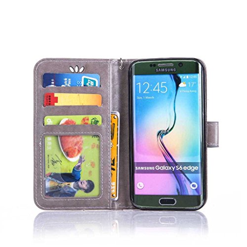 Samsung Galaxy S6 Edge 手帳型 ケース カバー Zeebox Samsung Galaxy S6 Edge 高品質 落下防止 保護カバー 財布型ケース カード収納ホルダー&ストラップ付き マグネット式 Samsung Galaxy S6 Edge 対応 無期限生涯補償付き (グレー #6)