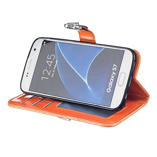Galaxy S7 手帳型 ケース Zeebox 高品質 保護カバー 財布型ケース カード収納ホルダー スタンド機能 マグネット式 Samsung Galaxy S7 対応 ケース (オレンジ #5)