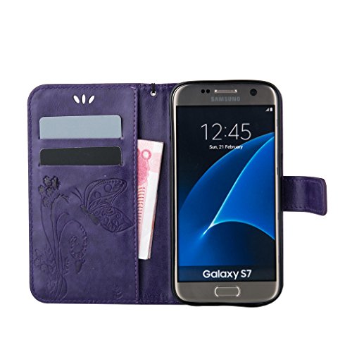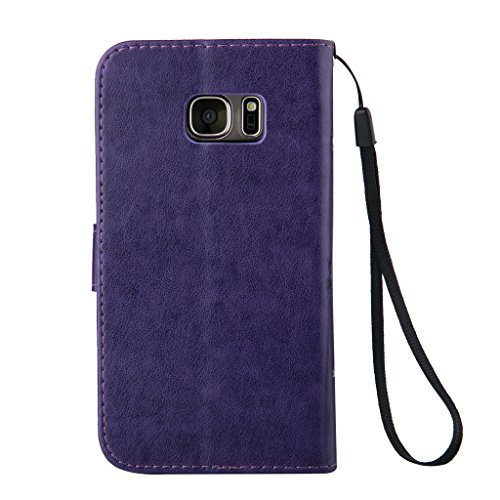 Zeebox Galaxy S7 手帳型 ケース カバー 高品質 落下防止 保護カバー 財布型ケース カード収納ホルダー&ストラップ付き マグネット式 Samsung Galaxy S7 対応 無期限生涯補償付き (紫色)