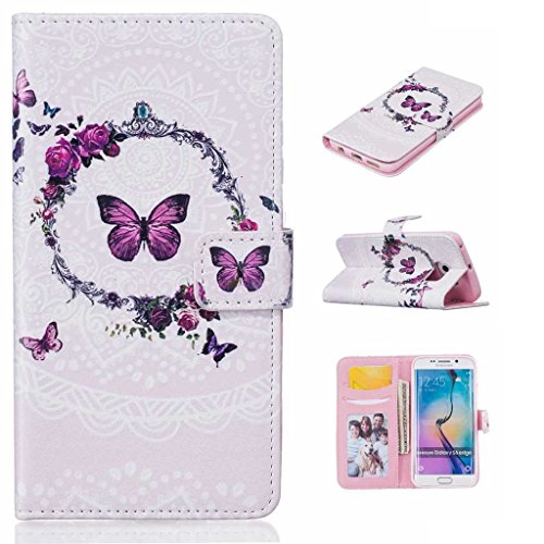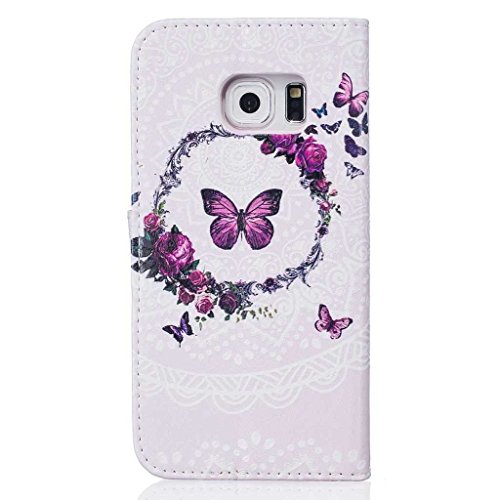 Samsung Galaxy S6 Edge 手帳型 ケース Zeebox 高品質 落下防止 保護カバー 財布型ケース カード収納ホルダー マグネット式 Samsung Galaxy S6 Edge 対応 無期限生涯補償付き (蝶 #5)