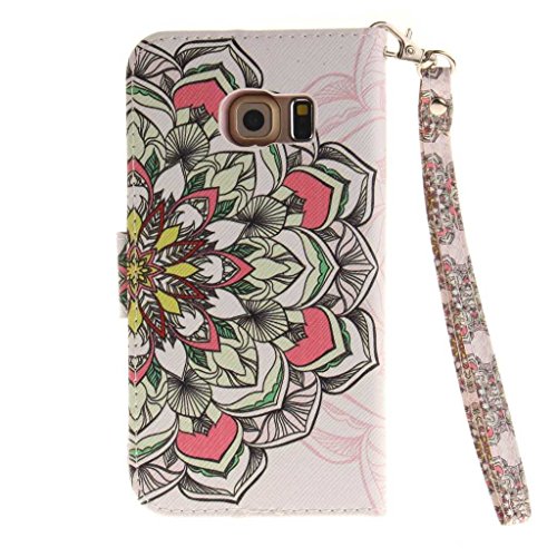 Samsung Galaxy S6 Edge 手帳型 ケース Zeebox 高品質 保護カバー 財布型ケース カード収納ホルダー スタンド機能 マグネット式 ストラップ付き Samsung Galaxy S6 Edge 対応 ケース (#5)