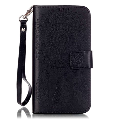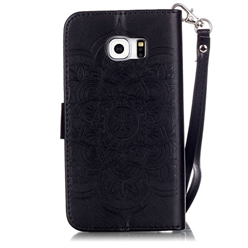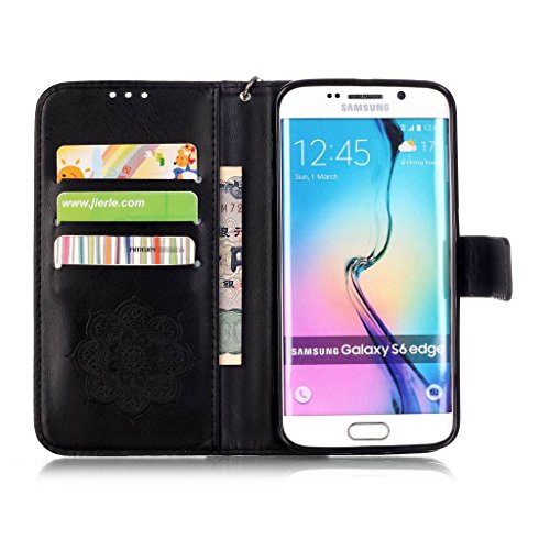 Zeebox Galaxy S6 Edge ケース 二つ折り 手帳型ケース カード収納ホルダー&ストラップ付き 横開き Samsung Galaxy S6 Edge 用 カバー 生涯補償付き (ブラック)