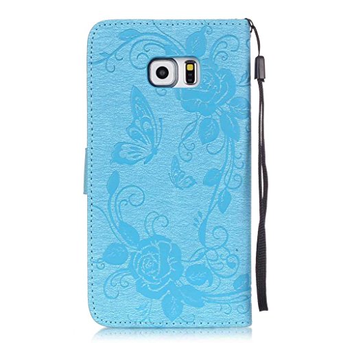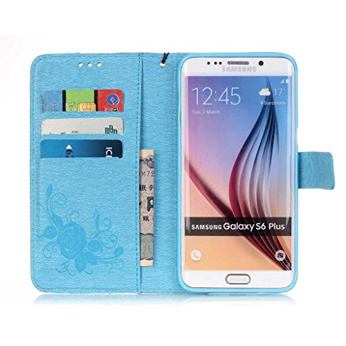 Zeebox Galaxy S6 Edge Plus ケース PUレザー 手帳型ケース カード収納 ホルダー Samsung Galaxy S6 Edge Plus 用 カバー 無期限生涯補償付き (ブルー)