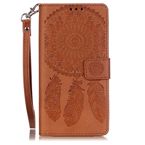Zeebox Huawei P9 Lite ケース 二つ折り 手帳型ケース カード収納ホルダー&ストラップ付き 横開き Huawei P9 Lite 用 カバー 生涯補償付き (ブラウン)