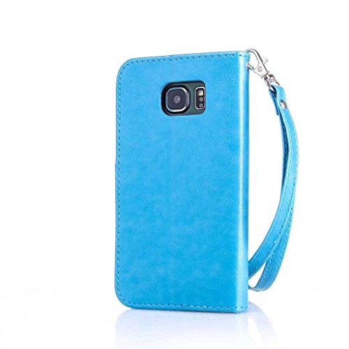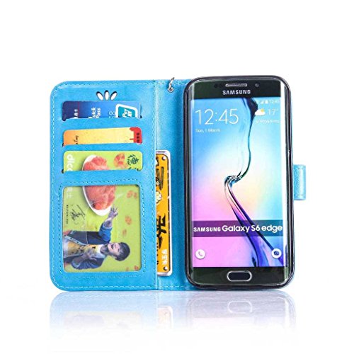 Samsung Galaxy S6 Edge 手帳型 ケース カバー Zeebox Samsung Galaxy S6 Edge 高品質 落下防止 保護カバー 財布型ケース カード収納ホルダー&ストラップ付き マグネット式 Samsung Galaxy S6 Edge 対応 無期限生涯補償付き (ブルー #7)