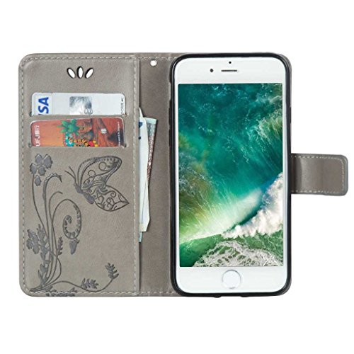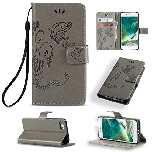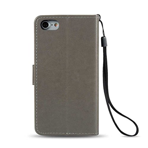 Zeebox iPhone 7 Plus 手帳型 ケース カバー 高品質 落下防止 保護カバー 財布型ケース カード収納ホルダー&ストラップ付き マグネット式 Apple iPhone7 Plus 対応 無期限生涯補償付き (グレー)