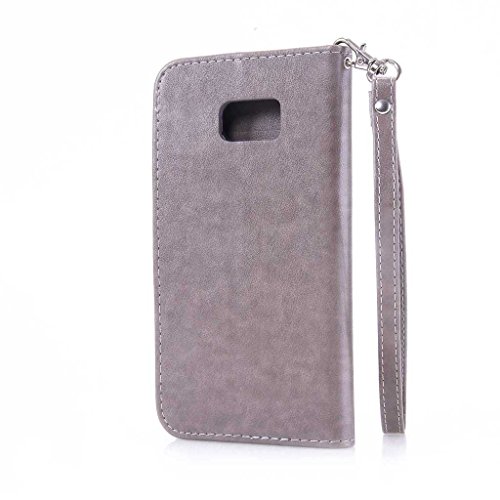 Samsung Galaxy S7 Edge 手帳型 ケース カバー Zeebox Samsung Galaxy S7 Edge 高品質 落下防止 保護カバー 財布型ケース カード収納ホルダー&ストラップ付き マグネット式 Samsung Galaxy S7 Edge 対応 無期限生涯補償付き (グレー #6)