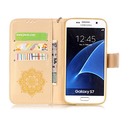 Zeebox Galaxy S7 ケース 二つ折り 手帳型ケース カード収納ホルダー&ストラップ付き 横開き Samsung Galaxy S7 用 カバー 生涯補償付き (イエロー)