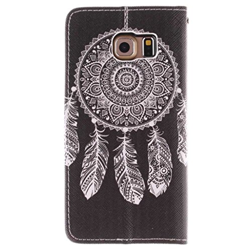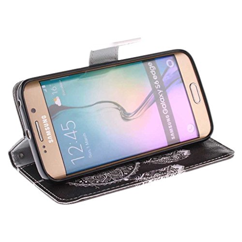 Galaxy S6 Edge 手帳型 ケース Zeebox 高品質 合皮レザー 保護カバー 財布型ケース カード収納ホルダー スタンド機能 マグネット式 防塵 耐久 Samsung Galaxy S6 Edge 対応 ケース カバー (ブラック #4)