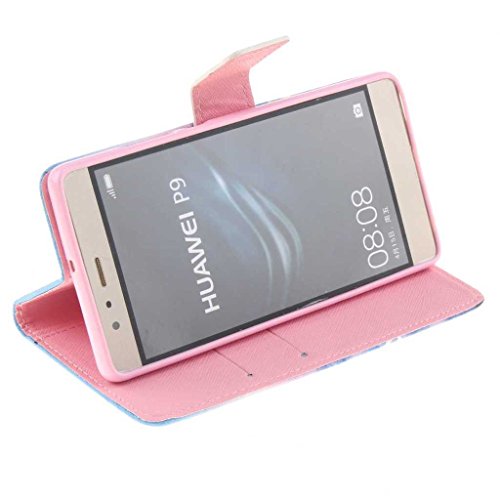 Huawei P9 手帳型 ケース Zeebox 高品質 保護カバー 財布型ケース カード収納ホルダー スタンド機能 マグネット式 防塵 耐久 Huawei P9 対応 ケース カバー (ブルー #3)