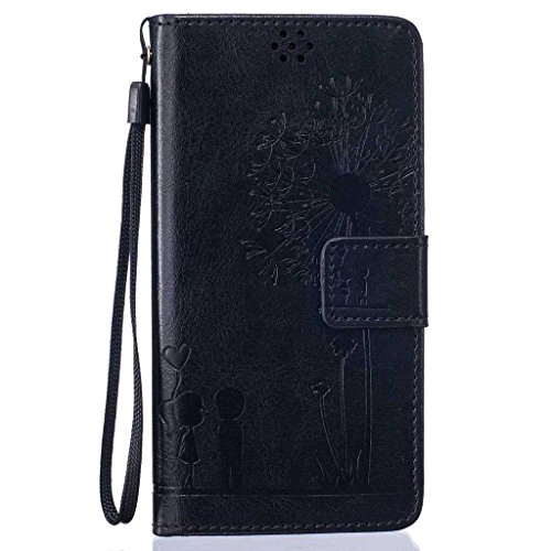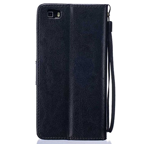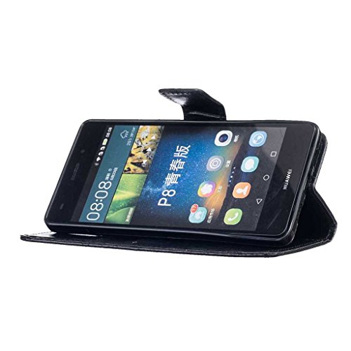 Huawei P8 Lite 手帳型 ケース カバー Zeebox [生涯補償付き] 高品質 落下防止 保護カバー カード収納 スタンド機能 マグネット式 ストラップ付き Huawei P8 Lite 対応 Case (ブラック #3)
