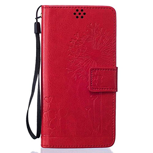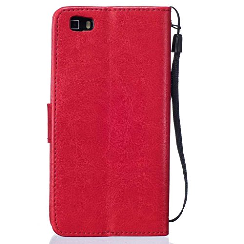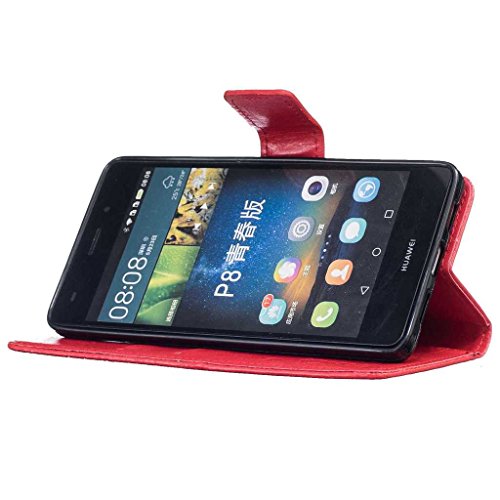 Huawei P8 Lite 手帳型 ケース カバー Zeebox [生涯補償付き] 高品質 落下防止 保護カバー カード収納 スタンド機能 マグネット式 ストラップ付き Huawei P8 Lite 対応 Case (レッド #4)