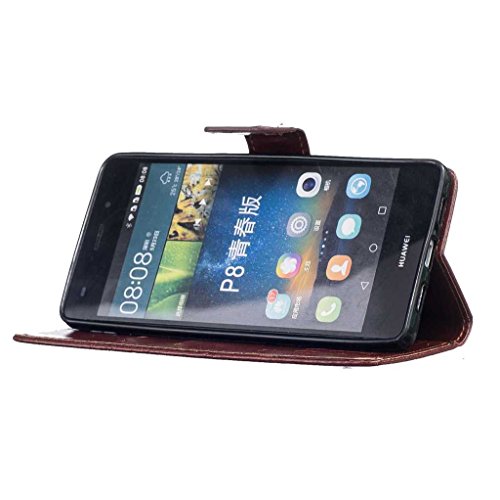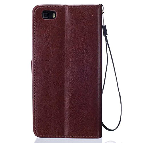 Huawei P8 Lite 手帳型 ケース カバー Zeebox [生涯補償付き] 高品質 落下防止 保護カバー カード収納 スタンド機能 マグネット式 ストラップ付き Huawei P8 Lite 対応 Case (ブラウン #2)