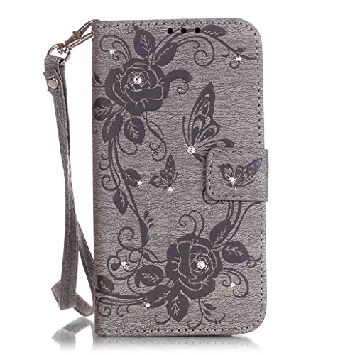 Zeebox iPhone 5 / iPhone 5s ケース PUレザー 手帳型ケース カード収納 ホルダー ダイヤモンド Apple iPhone5 / iPhone5s 用 カバー 無期限生涯補償付き (グレー)