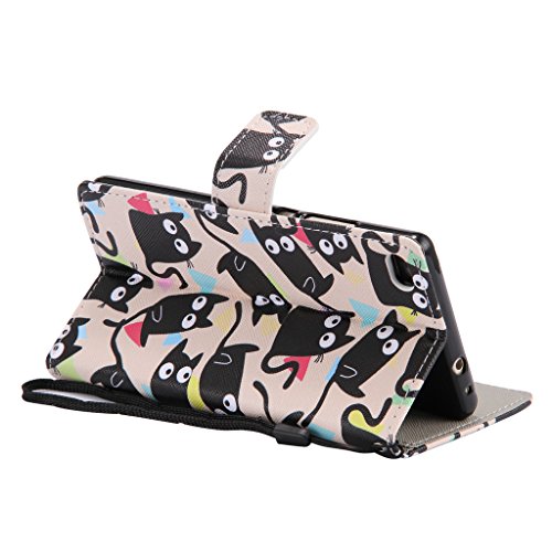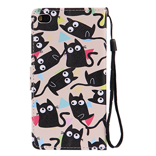 Zeebox Huawei P8 手帳型 ケース カバー [生涯補償付き] 高品質 保護カバー カード収納 スタンド機能 マグネット式 ストラップ付き Huawei P8 対応 (ブラック)