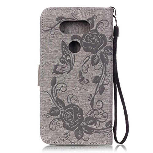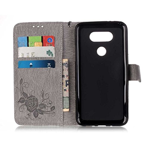 Zeebox LG G5 ケース PUレザー 手帳型ケース カード収納 ホルダー LG G5 用 カバー 無期限生涯補償付き (グレー)